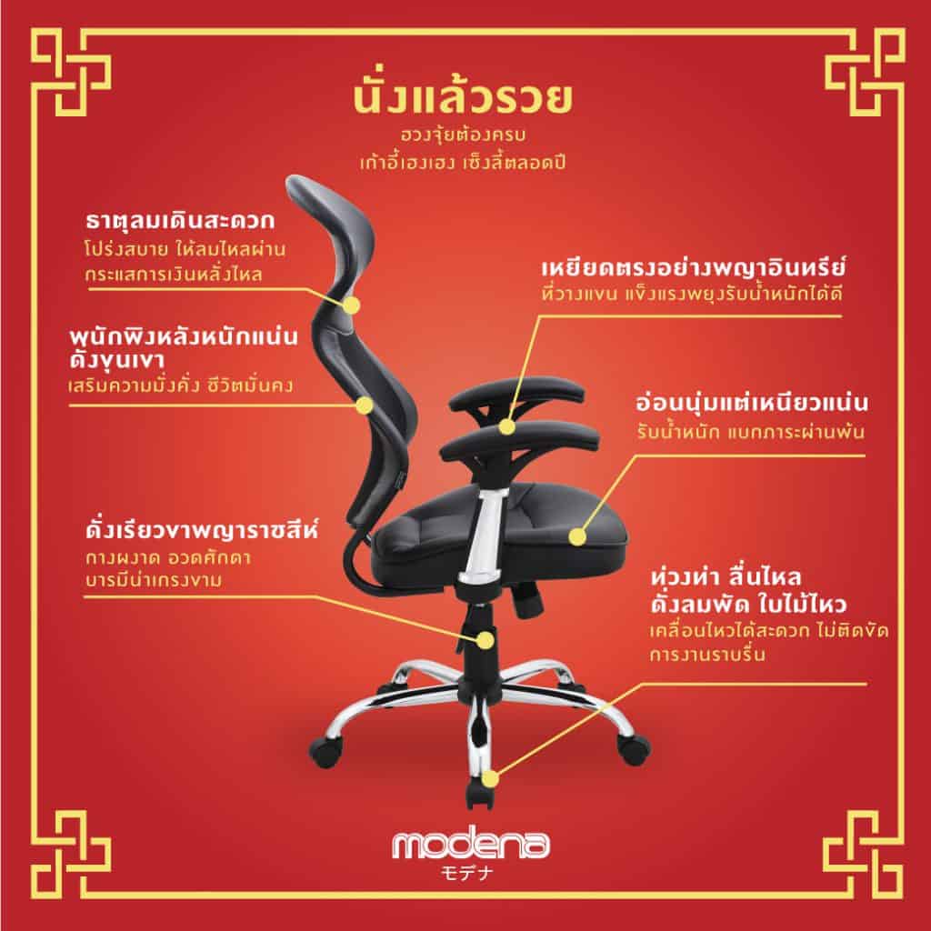 - ธาตุลมเดินสะดวก – พนักพิงที่โปร่งสบาย ช่วยให้ลมไหลผ่านเข้ามาดีกระแสการเงินพัดพาหลั่งไหล