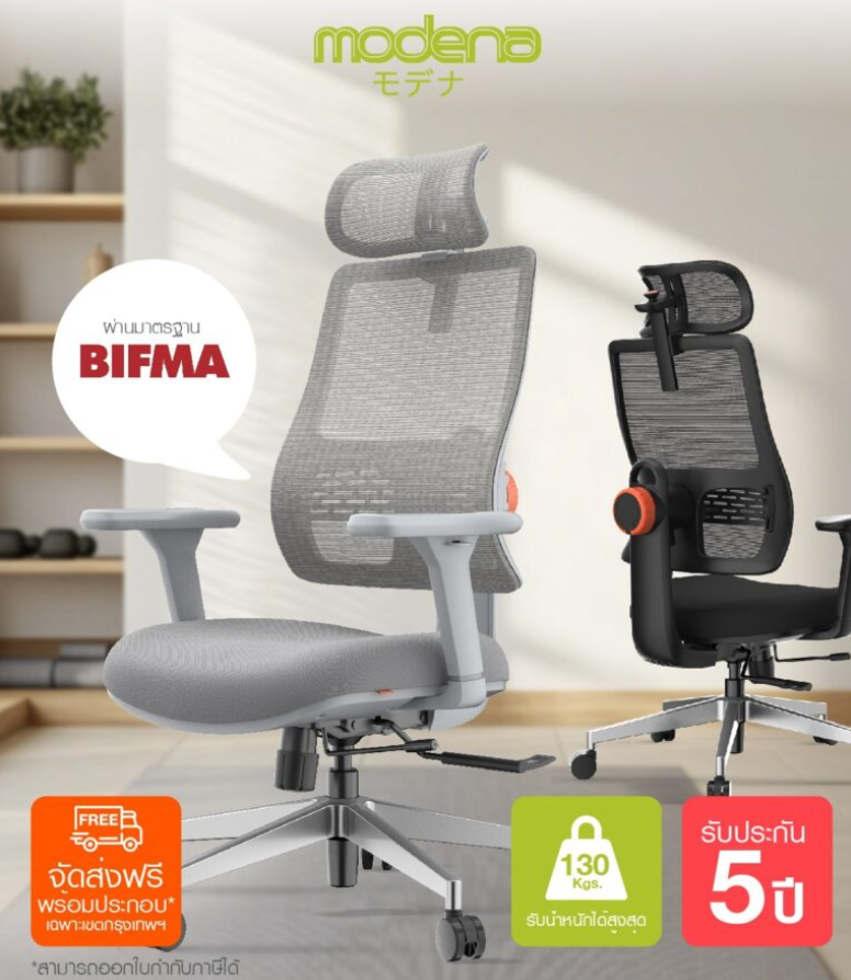 เก้าอี้เพื่อสุขภาพสำหรับใช้ในสำนักงานจาก MODENA ช่วยให้พนักงานสามารถนั่งทำงานได้สบายไม่ปวดหลัง ทุ่มเทเวลาให้ชั่วโมงทำงานได้อย่างเต็มที่ สร้างสภาพแวดล้อมการทำงานที่เหมาะสม และยังเป็นเก้าอี้ออฟฟิศที่จะสร้างความพึงพอใจให้พนักงานในระยะยาวด้วย
