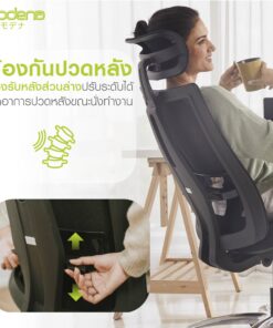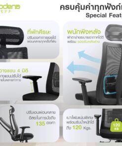 - พนักพิงสูง รองรับถึงต้นคอ หุ้มด้วยผ้าตาข่าย Mesh และเอนได้อิสระ