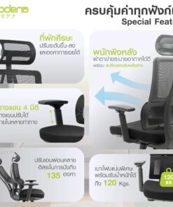 - พนักพิงสูง รองรับถึงต้นคอ หุ้มด้วยผ้าตาข่าย Mesh และเอนได้อิสระ