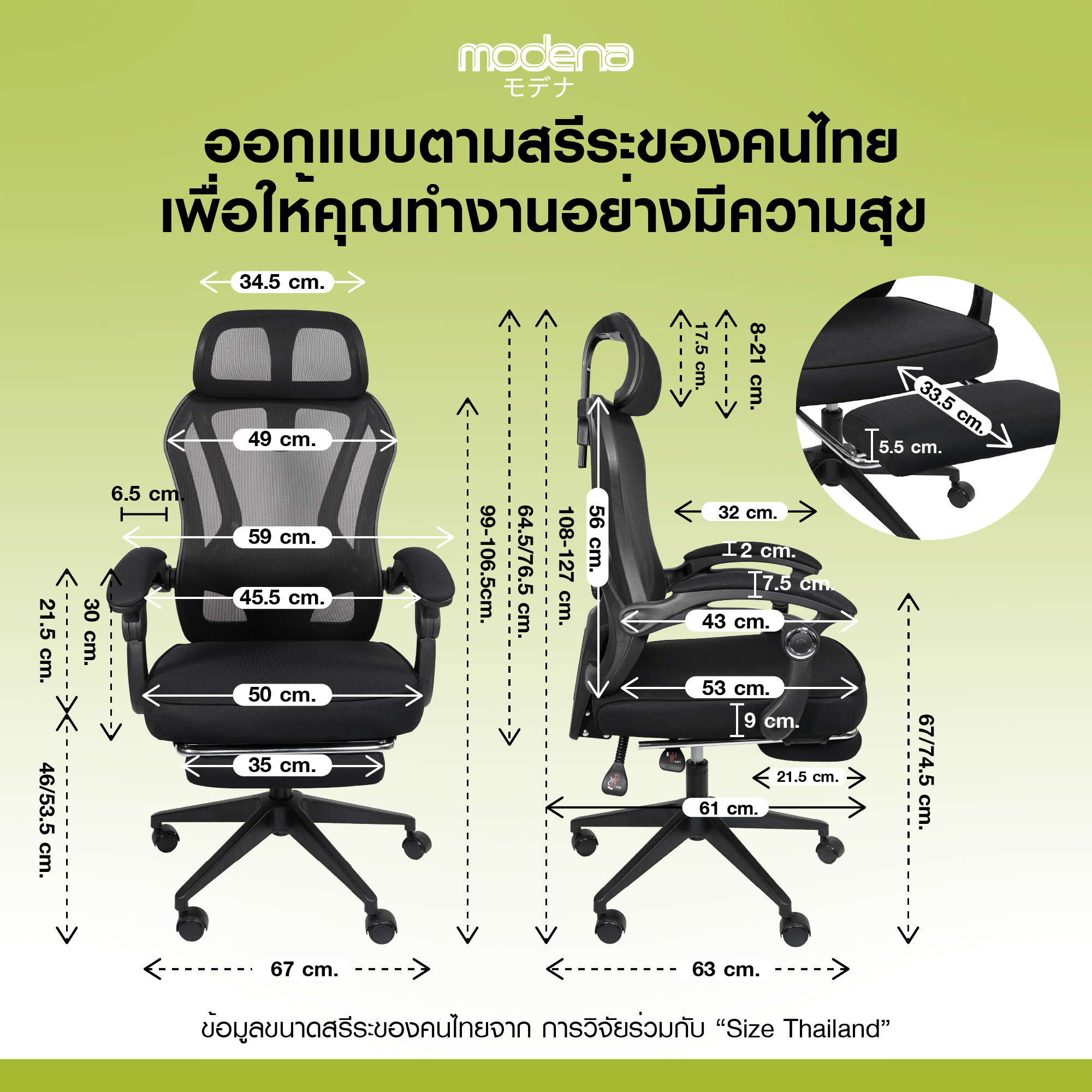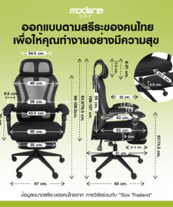 • Lumbar Support ปรับได้ 2 ระบบ ทั้งความสูงและแรงดัน รองรับหลังล่างตรงจุด